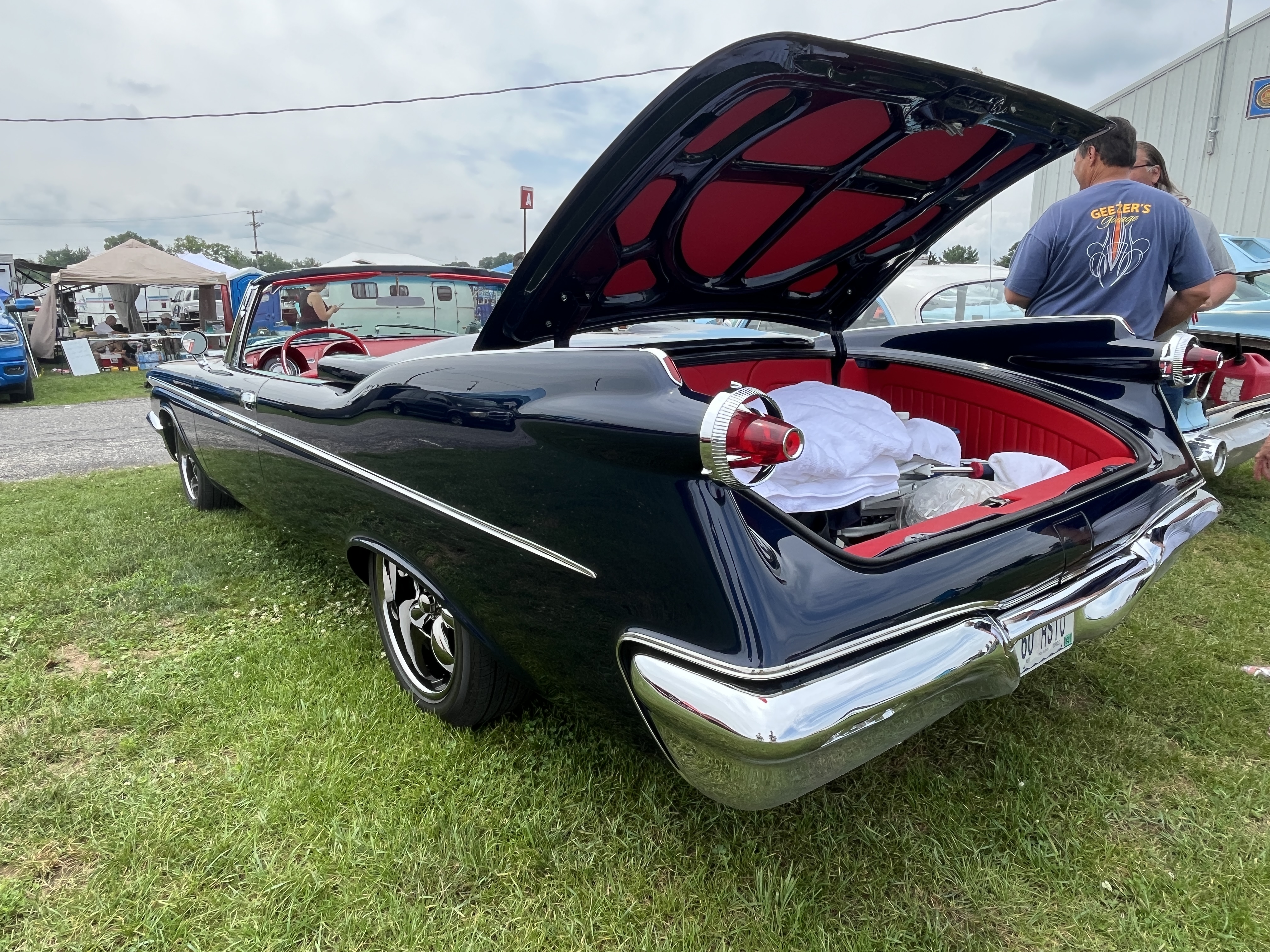 ------------ Original Message ----------From: Noel Hastalis <cpaviper@xxxxxxxxxxx>To: Gloria Moon <agmoon300@xxxxxxxxx>, Charlie V <cv300g@xxxxxxxxx>Cc: Chrysler 300 Club International <chrysler-300-club-international@xxxxxxxxxxxxxxxx>Date: 07/21/2025 11:31 AM CDTSubject: Re: {Chrysler 300} Fw: CarlisleThe customized '60 Imperial that Gloria awarded began life with a steel top. I forget if the owners said it was built as a 2- or 4-door. With its top removed, no convertible guts were added. Don't know about chassis reinforcements. Owners carry around a clear plastic tarp to cover this car if/when it rains, but said it never sees rain. I'm not sure of that, since we had some rain every day in Carlisle.Chad Coulter's black F convertible looked great under the Survivors' Tent. We first saw Chad bring this car to our May 2023 Hershey Spring Meet hosted by Hank Hallowell.And parked next to Chad's F was a sparkling black '60 Windsor 4-door sedan, showing 7,600 original miles! A couple photos attached - note the Windsor's trunk ledge displaying its rarely seen early production outboard drain tubes - look closely at the trunk photo.Speaking of Hank, on Wednesday he hosted about 100 of the WPC Club attendees at Hershey's AACA Museum, enlisting all the Museum's docent volunteers to lead small groups of us around the Museum and its overflow storage building. Hank also graciously hosted lunch for the group. Then he opened his 3 buildings that housed his mostly Mopar car collection. Hank displayed his magnificent '31 Chrysler Imperial CG Waterhouse Victoria (1 of 3 known out of 6 built) and his '60 Imperial Ghia Limo that was NY Gov. Nelson Rockefeller's back in the day - both in the Expo Center featuring the Chrysler 100 cars. Hank also had on display his red '70 Challenger R/T SE 440 SixPack, yellow/white '57 Firedome coupe and white survivor '61 Polara 4-door sedan with 383 Ram Inducted beauty.Kudos also to Bill and Marilyn Allen, who trailered their '56 Petty Tribute 2-door sedan, deck lid autographed by Richard and Maurice Petty, from their Alamogordo, NM home. We first saw this amazing '56 back in '14 when Bill and Marilyn hosted our Fall Meet out there. Their yellow Prowler kept the '56 company in their 2-level trailer towed cross-country behind their motorhome.To Gloria's comment that none of the three of us 300 Club officers made a speech, even though I had exchanged emails with WPC President, Bill Adams pre-Carlisle, neither I nor any of the other of us officers were asked to speak.I have plenty more photos - can provide to Bob Merritt for his next E-News, if requested.NoelOn 07/21/2025 10:44 AM CDT Gloria Moon <agmoon300@xxxxxxxxx> wrote:I'm sure our editors would love some photos.