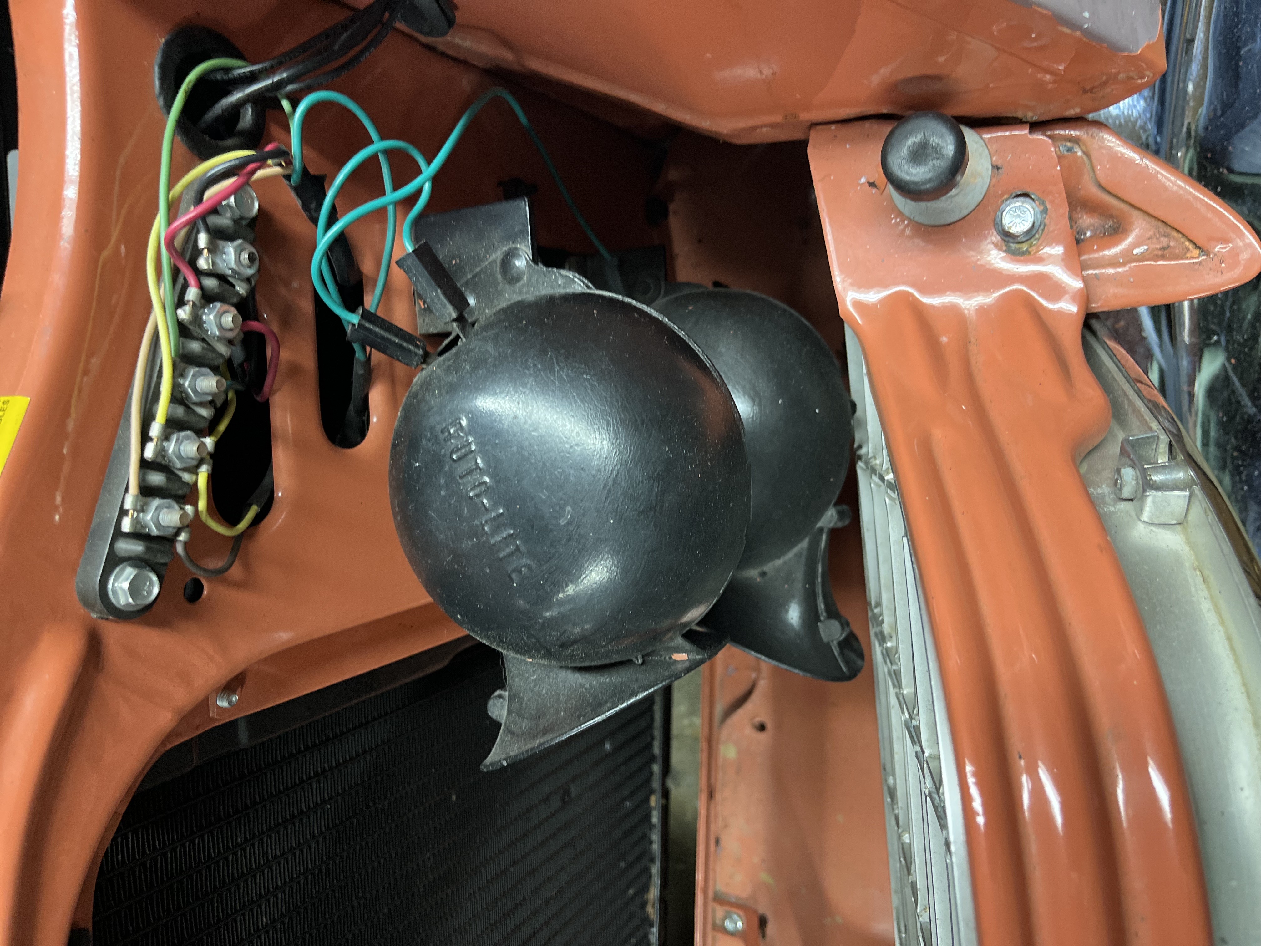 This is what I have currently… looks about right…--On Thu, May 22, 2025 at 3:35 PM MARVIN RAGUSE <mjraguse@xxxxxxx> wrote:In 1979 for the Chrysler 5th Ave, we released a triad horn . It was a real sweet sounding system. That said I don’t think this was meant to be a 3 horn system was it? So a second long horn mounts to the other side? The last long horn system I have is on my 39 New Yorker.Sent from my iPhoneOn May 22, 2025, at 3:24 PM, John Nowosacki <jsnowosacki@xxxxxxxxx> wrote:--I have one that I'll be bringing to Carlisle in July, if that helps?On Thu, May 22, 2025 at 2:08 PM Bob Podstawski <cadillacbob88@xxxxxxxxx> wrote:Thanks all… now I have to hunt for the “long horn”!!--On Thu, May 22, 2025 at 2:33 PM 'Ron Waters' via Chrysler 300 Club International <chrysler-300-club-international@xxxxxxxxxxxxxxxx> wrote:--The radiator yoke that is in your photo may have also been used for Desoto, Imperial, etc. Kind of a ‘one size fits all’. So while those holes may have no purpose on the 300D, they could have been for a horn bracket , for example, on a different make/model.