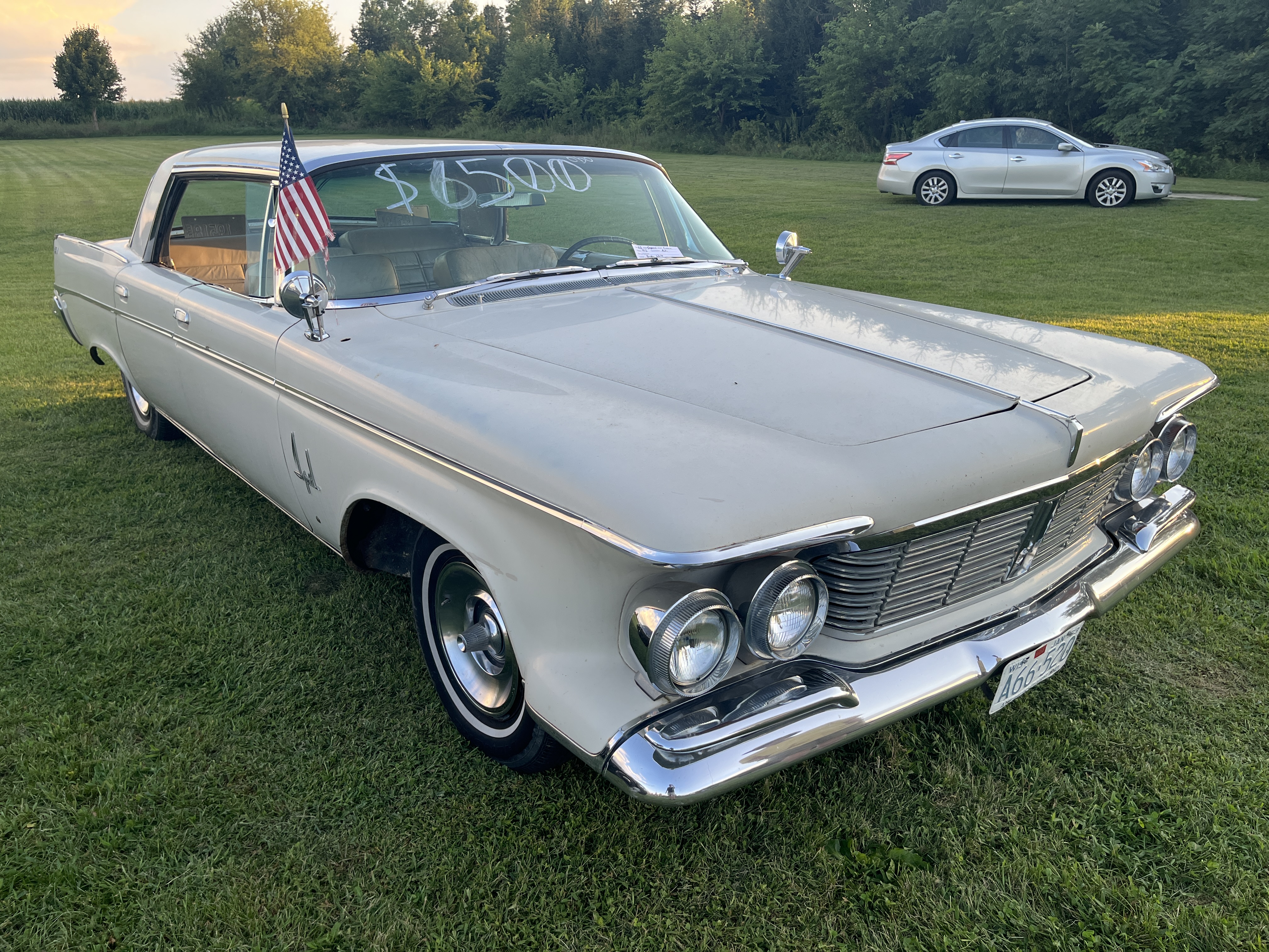 I know there are some Imperial fans within the club,…i met a man selling a very honest and solid 63 Imperial Crown sedan at a small car show in the town of Exeter WI this evening. The $6500 price tag seemed very reasonable…appeared to have original paint and original white leather interior. Great stainless, straight panels and shut lines, almost couldn’t hear it while running. A/C works, dash was very nice with no cracks in pad. I’ve attached a picture and have more for anyone interested…don’t have good cell coverage at the moment.