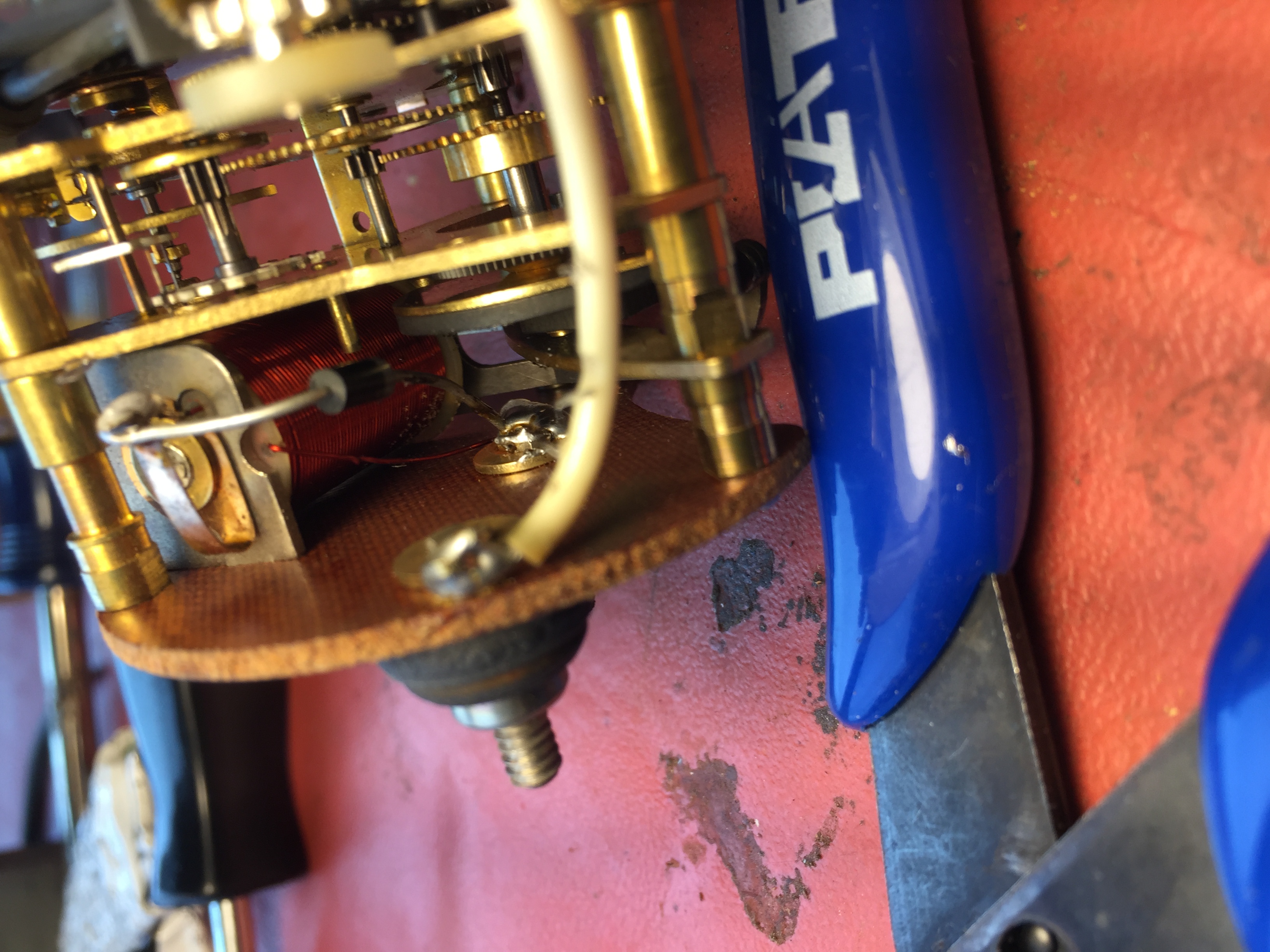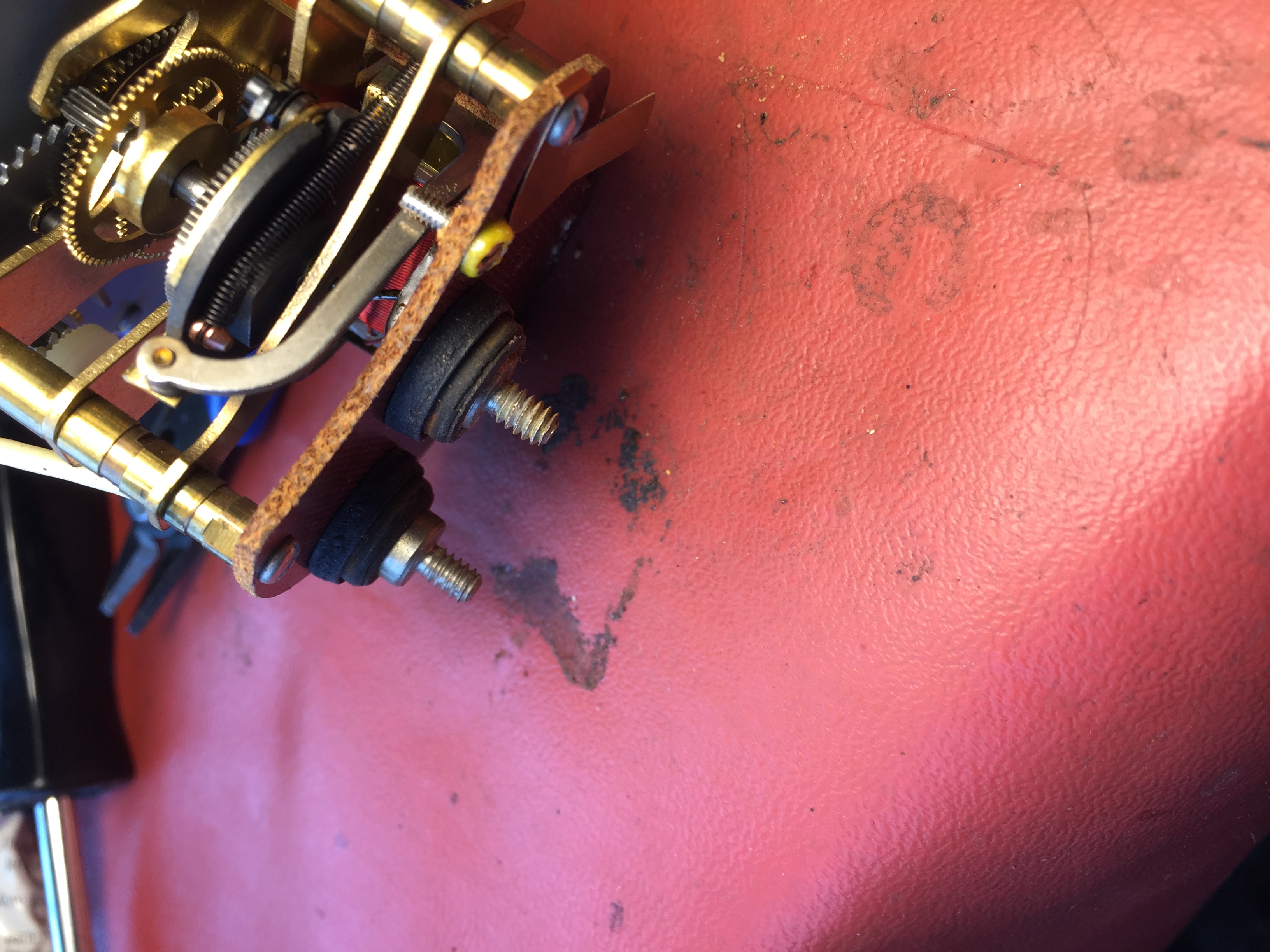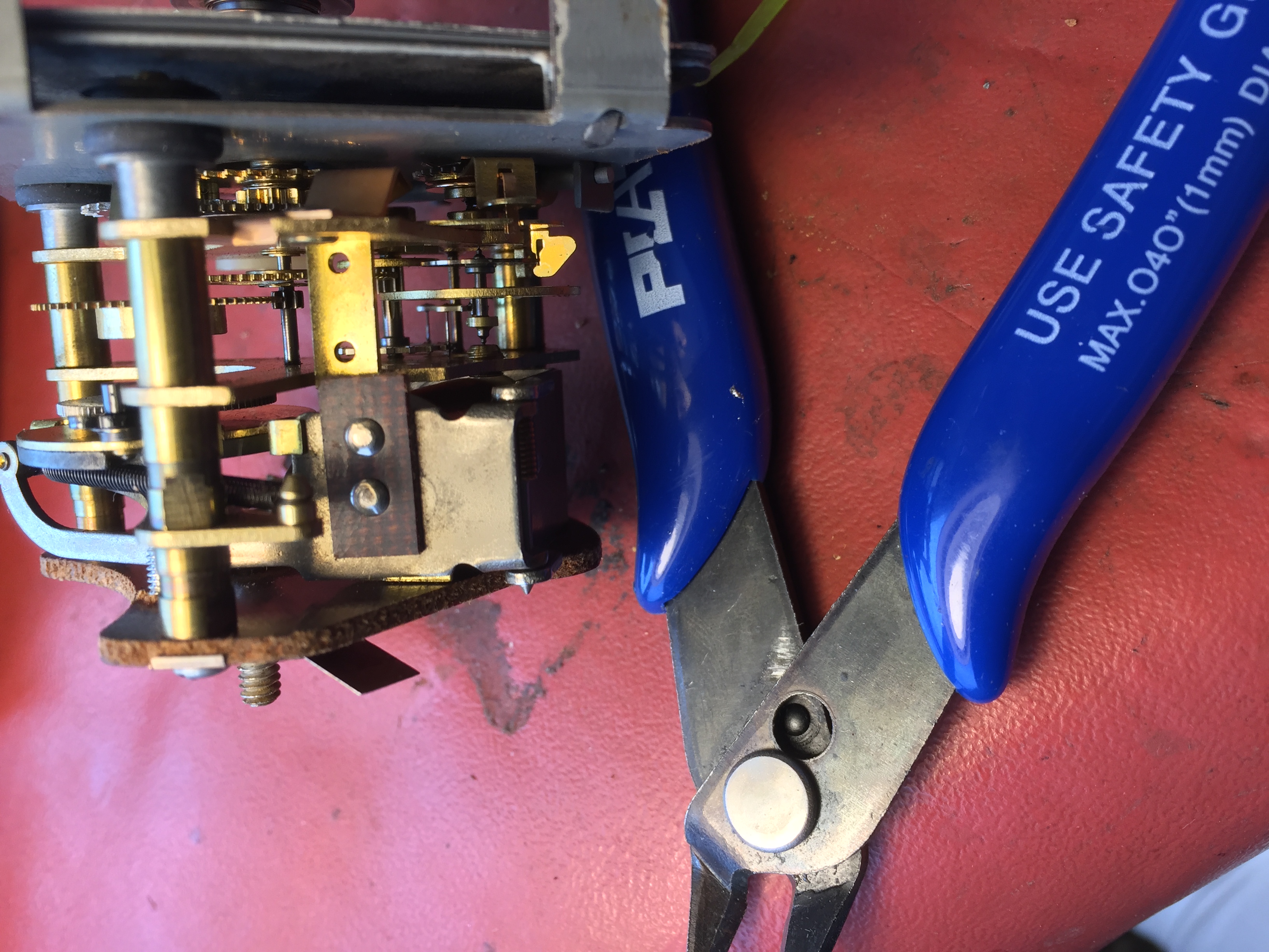 see brass square above two steel rivets , that is stop that bends , see silver screw as new stop picture at end (2)