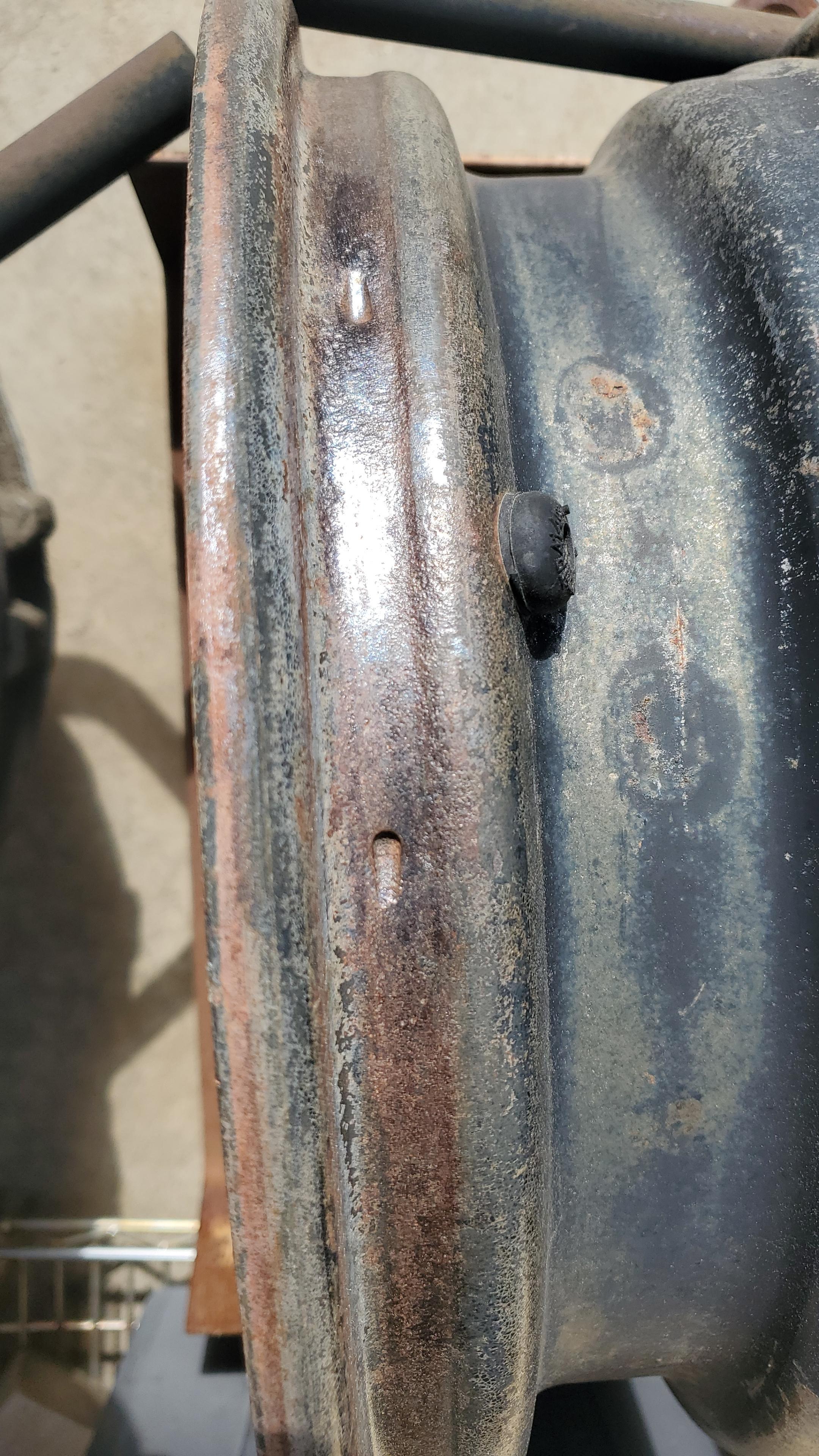 I am tired of chasing the hub caps. I may get a set of 15x7 something with a 4 inch backspace and call it a day as far as wheels go. The brand new 14-inch steel wheels on the car are fine, I am just not interested in restoring a set of factory hubcaps just