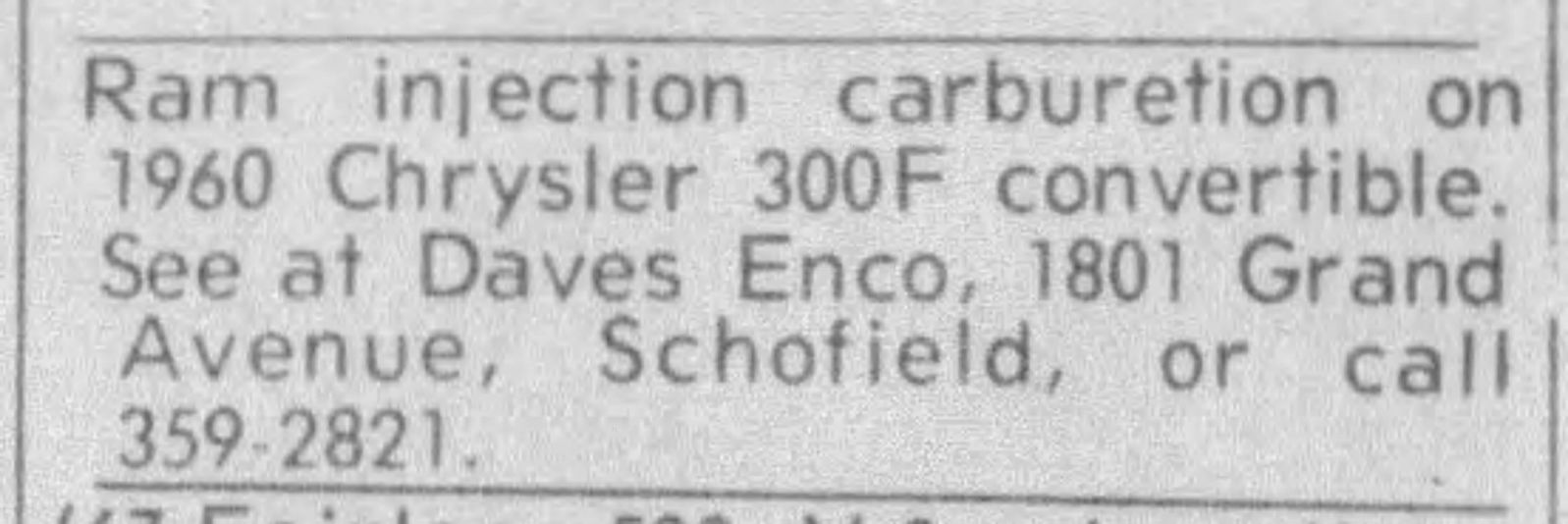 Had a nice visit with Joe Jordan yesterday and during our chat, he mentioned that he had tried to buy a Terra Cotta 300F back in 1969. I have an archive of saved 300F newspaper clippings from 1960 to 1970 and sure enough, I had the ad he saw for it. He knows the current owner and he's going to pass it on.