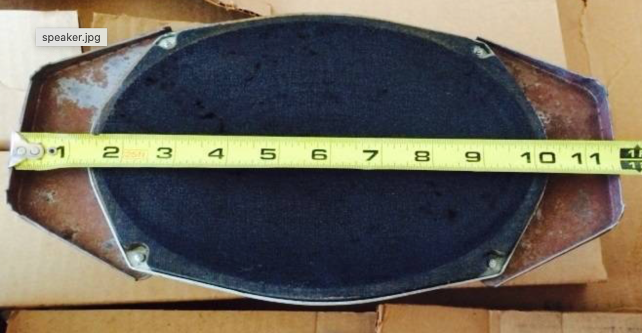 For my front speaker on my ’65 I made a mounting panel the same dimension as the original speaker, which I recall was 4” x 10”. I cut two speaker holes in the plate and mounted small Rockford Fosgate speakers to it. It sounds great and avoided the cost of custom speakers. Rear are 6” x 9” and bolt up directly under the package tray.