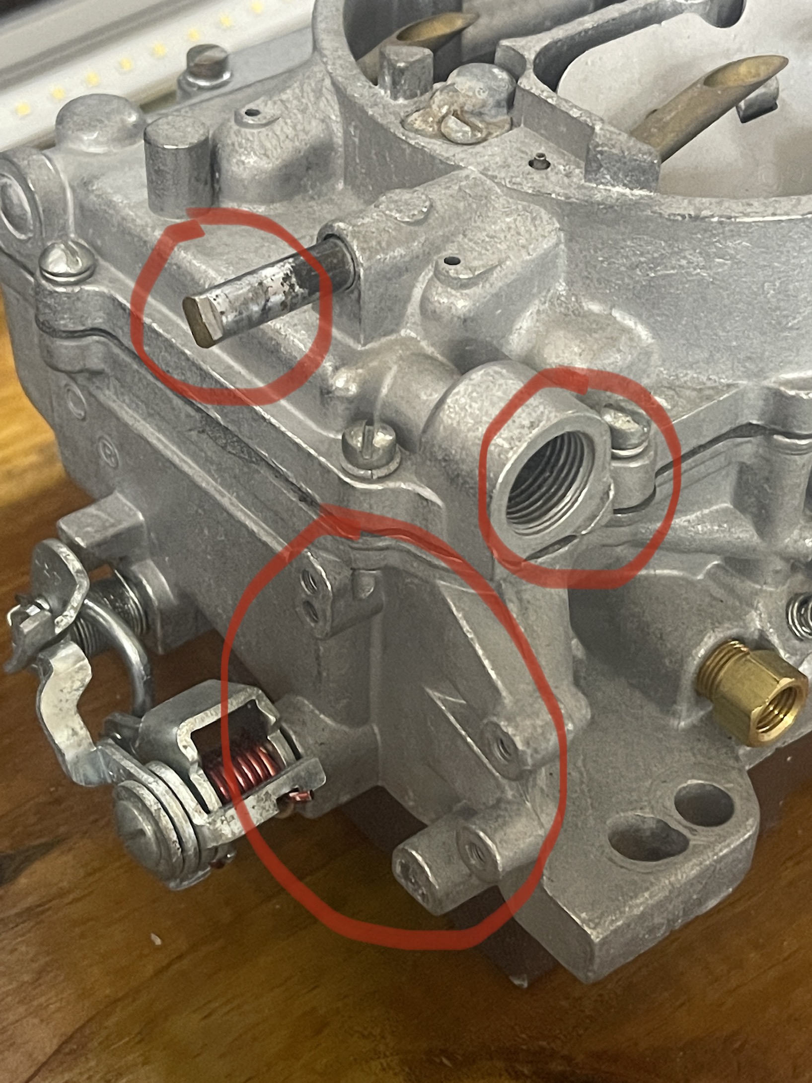 Hello club, Wondering if anyone out there may have a spare 2903S carb for sale, or a parts carburetor that might have some pieces we are missing. This 2903 is missing a few things, circled. The choke butterfly link, which I can probably make by hand, on one side. Then the round choke piston assembly and link is completely missing from the other side, as well as the metal piece for the end of the choke butterfly shaft. On the plus side I was able to get the brass vacuum port adapter from Napa. Thanks! D&K -- For archives go to http://www.forwardlook.net/300-archive/search.htm#querylang --- You received this message because you are subscribed to the Google Groups "Chrysler 300 Club International" group. To unsubscribe from this group and stop receiving emails from it, send an email to chrysler-300-club-international+unsubscribe@xxxxxxxxxxxxxxxx. To view this discussion visit https://groups.google.com/d/msgid/chrysler-300-club-international/887A2515-6352-4F2C-BCB3-51511465F2A4%40yahoo.com.