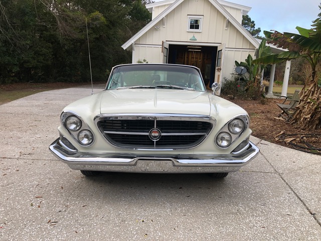 So I wanted to share my story. 2 1/2 years ago while logging onto RM Sotheby’s action site to bid on a 63 Corvette ( I did not win} I inadvertantly and unaware, bid on and won a Chrysler 300G. Monday after the action I was notified of my purchase. My first reaction was that it was a scam and I contacted Sotheby’s to report it. After many emails and conversations and a few weeks later my “new” car arrived. Clyde was in need of a total restoration. Clyde gave me a purpose for the next 2 1/2 years. After removing all the trim interior and engine, I hand stripped (aviation Paint Remover), repaired rust while removing and repairing many prior “repairs”. I followed this with 2k primer and single stage paint in original Alaskan White. I sent the engine out for restoration while I started the interior work. Materials from Quirey”s, sent the bumpers to be re-chromed. Sourced polished or repaired most of the damaged trim while I sorting and rebuilding the instruments and electrical. Got the whitewalls from Coker.