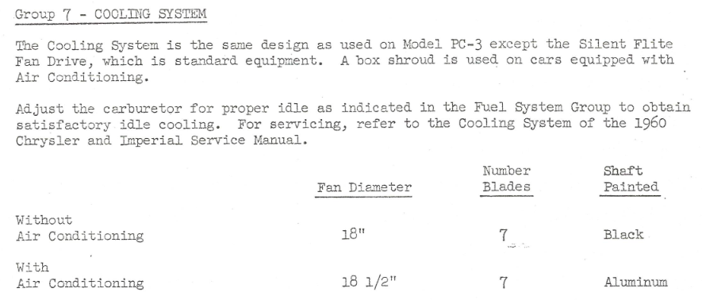 Yes, Nick is correct.  Use of fan clutch began in ’57 with the C.  Doesn’t matter if A/C or not.  Gil’s car is correct with 7 blade fan and clutch.  We have a page about fans on the web site:  Chrysler Engine Fan Summary (chrysler300club.com)
