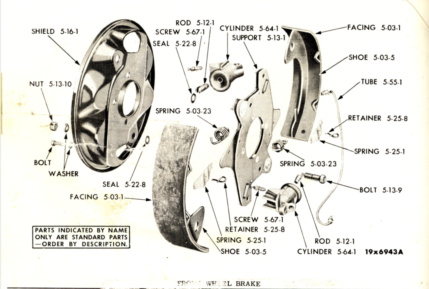 Like Ron says, if the “return spring link” is not broken, it may just be out of place. Please refer to pages 16 to 19 of the 1958 Brake Service book on the club website https://www.chrysler300club.com/tech/125.pdf It has a good picture on p18 as well. Make sure the link is properly seated on the pin it pivots around when assembling the brakes. Otherwise the coil springs won’t provide even tension. Worth a close inspection first. I’m pretty sure I looked at that when I put mine together because I was choosing the best ones out of some spares. Otherwise there may be some other advice from the book to assist in diagnosing the problem. Hope this helps. Henry From: chrysler-300-club-international@xxxxxxxxxxxxxxxx [mailto:chrysler-300-club-international@xxxxxxxxxxxxxxxx] On Behalf Of Ron Waters Ray – The parts book will supply you with illustrations and proper terminology for the part that you need. If you don’t have one, it’s best to get the 1955 thru 58 book, published May 1964. Blue and white cover. You can find them on ebay or you can download it for free from MyMopar. Have you already pulled the center support piece and confirmed that your square spring is broken ? It’s pretty difficult to snap that guy. What I’ve seen happen is that the square spring dislodges from the eccentric adjuster so that it can no longer hold the brake spring correctly. If you actually have a broken spring, then a replacement should come from a 57-8, or early 59 Desoto or Chrysler with 12” brakes. John Fowlie at Big M Auto can help you out with that. Be sure you verify that the hex head adjusters work and replace small circular dust shields by adjusters. From the parts book, here is an illustration of the front brakes. The numbers associated with the parts are reference numbers, not part numbers. Ron From: chrysler-300-club-international@xxxxxxxxxxxxxxxx On Behalf Of Ray Melton Hello All - Following an extensive restoration of virtually every system on my late father's 1957 Chrysler 300C convertible, I have endured five maddening years of the right front brake dragging, pulling, and sometimes even locking up hard enough to stop the wheel from turning! I've replaced wheel cylinders, shoes and return springs to no avail. Last month the RF brake locked up hard enough to skid the tire at 5 mph in a parking lot, and I only could get it unlocked by backing up a few feet, but then it would either drag hard or lock up again as soon as I went forward. I was lucky to nurse it a few miles back home, where I had to again skid the jammed RF wheel 20 feet into the garage. I won't dare drive it again until I get it fixed for good! Everything looks OK when I pull off the drum (although the lining on the trailing shoe is worn down to 1/8" after less than 1000 miles on the restoration - that's how bad the RF brake has been dragging all this time! With nothing obviously wrong, I just didn't know where to go from here. Just today I came across a very old article from George Riehl that described my symptoms exactly and diagnosed that one of the long, square-section springs within the backing plate had broken, and the only fix is to get another complete centerplane backing plate - suggesting that one from a 1957 New Yorker or perhaps even a '57 Dodge or DeSoto would work (must specify for 12" brakes). This is the link to that article: FRONT BRAKE BACKING PLATES with 12" brakes (ch300imp.com) That article includes photos of the backing plate I need. My problem is that I don't know exactly the terminology for what I need and don't know the best places to start looking for such an old part. I can provide a photo of the backing plate I (think) I need, but can't post it with this message on the listserver. Can anyone please help me clarify exactly what to ask for and perhaps even more importantly, who/where might be the best place to start looking? Ray Melton Las Cruces, NM 1957 Chrysler 300C cvt s/n 3N572517 (April 1957) (575)642-3151 -- -- For archives go to http://www.forwardlook.net/300-archive/search.htm#querylang --- You received this message because you are subscribed to the Google Groups "Chrysler 300 Club International" group. To unsubscribe from this group and stop receiving emails from it, send an email to chrysler-300-club-international+unsubscribe@xxxxxxxxxxxxxxxx. To view this discussion on the web visit https://groups.google.com/d/msgid/chrysler-300-club-international/668d61b9.170a0220.241d3.5a62SMTPIN_ADDED_BROKEN%40gmr-mx.google.com. |
