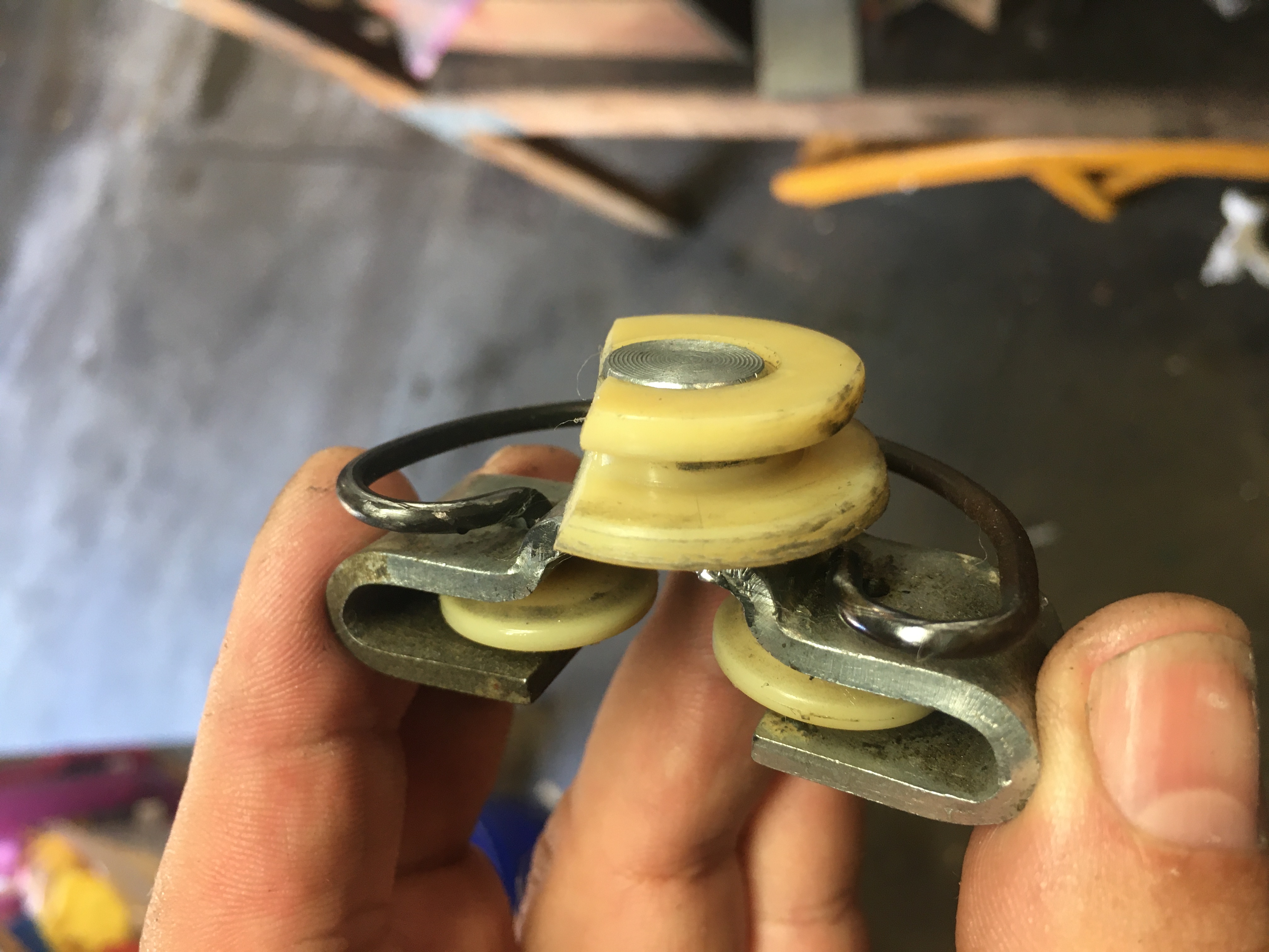 The roller for the quarter window in the 300K was stuck on the shaft. It had been sliding not rolling. I could roll by hand, but I had to twist it hard. I spent an hour or more