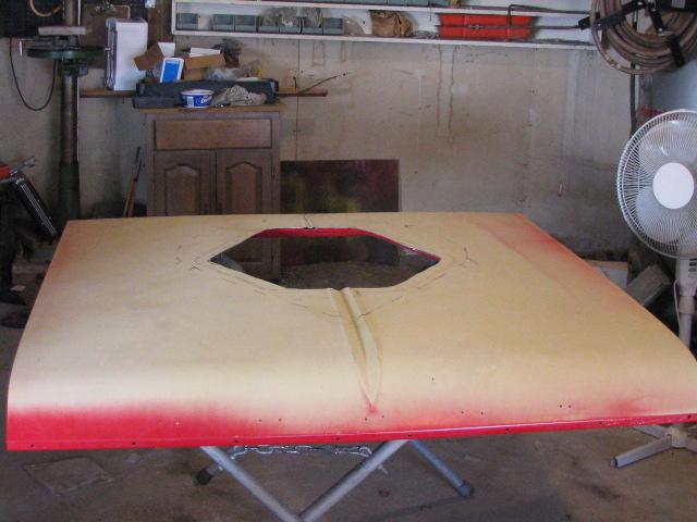 The hood is done and waiting here at home to be put on. Now remember, my theme is" how I would have built it in the Mid 60's" Those hood scoops were very popular on all kinds of cars. It will have ram air induction from the inner head-lights