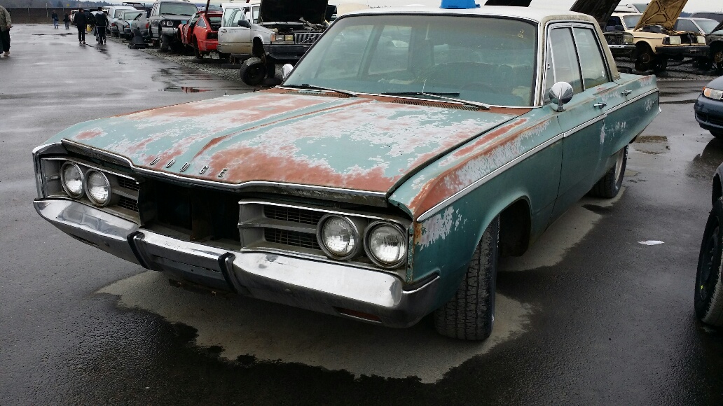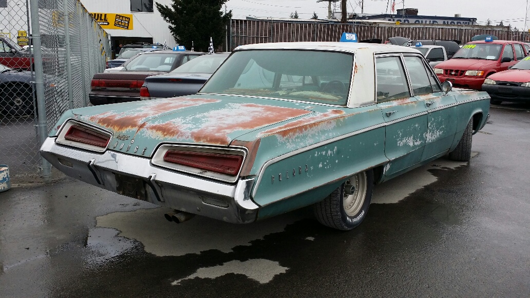 while I was poking around the you pull it junkyard out here I came across this 67 4 door sedan Polara they're trying to sell the car as a car instead of parting it out looks solid but I don't know if anybody is going to buy it kind of sad.
