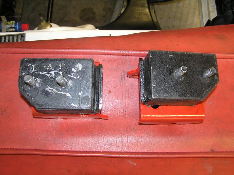 This modification to the engine mount bracket will allow the engine to move back and give needed clearance between the Pitman Arm and the header tube. Rich K. and I both had to do this after installation since TTI forgot to include this instruction. This modification will allow the engine to move back up to 1/2" inch. K-frames were made in 4 different plants and each has a small variation. Your trans mount should be slotted to accept the 1/2" or less needed. Your driveshaft should be fine and room on the spline for the movement.