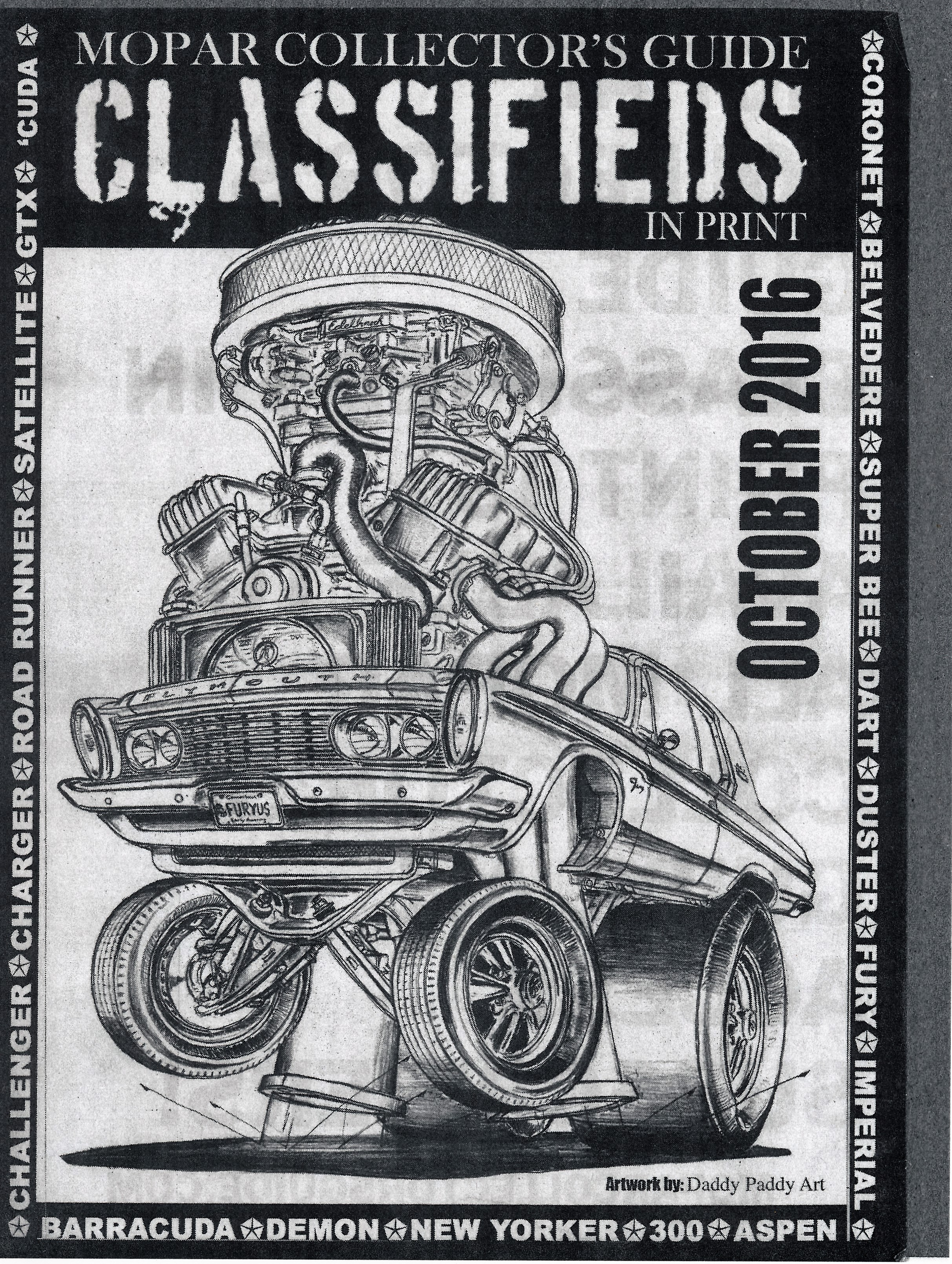 Nice surprise from artist Pat Daugherty. My '63 Fury Poly stroker made the cover of the October Mopar Collector's Guide Classifieds in print.