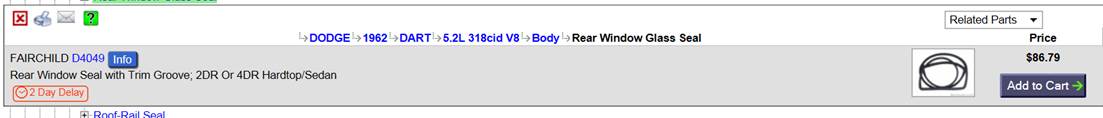 Good point – searching pretty easy there when you figure out the categories. Or search by description or known brand part numbers. Already planned to get the StockInteriors carpet at RockAuto. Just pulled up the MetroSuperSoft rubber parts I still need, hood to radiator support seal, hood to cowl seal, and rear door seals. Comes to $20 less shipped at RockAuto, than SummitRacing......