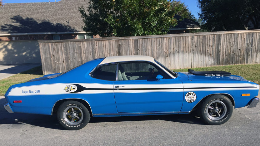 A friend called me today and asked If I knew about this car.. I have never heard of it. The Blue and white car was bought at a Mecum auction and the buyer lives just 25 miles from me. Sorry, I can't do links, but do a google search for 1975 Plymouth Valiant Super Bee .. It has a 360 engine with 300 HP. More than a USA engine because they have no emission standards........................MO