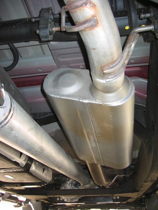 Then in 2015 after a full engine rebuild and adding the new Poly “wind-tunnel” manifold and 4bbl - was getting some gurgling/popping going downhill.  Bet it would not have done that with an X-pipe.  Not to mention much louder sound with the 4bbl.  Went back again and had FlowMaster 40 series Delta Flow swapped in (a tad quieter muffler).  That cured that..........  That reminds me - just put on new tailgate seals and it finally quit raining for a few days - have to go see how she sounds (and smells) now - should help with exhaust smells getting inside.