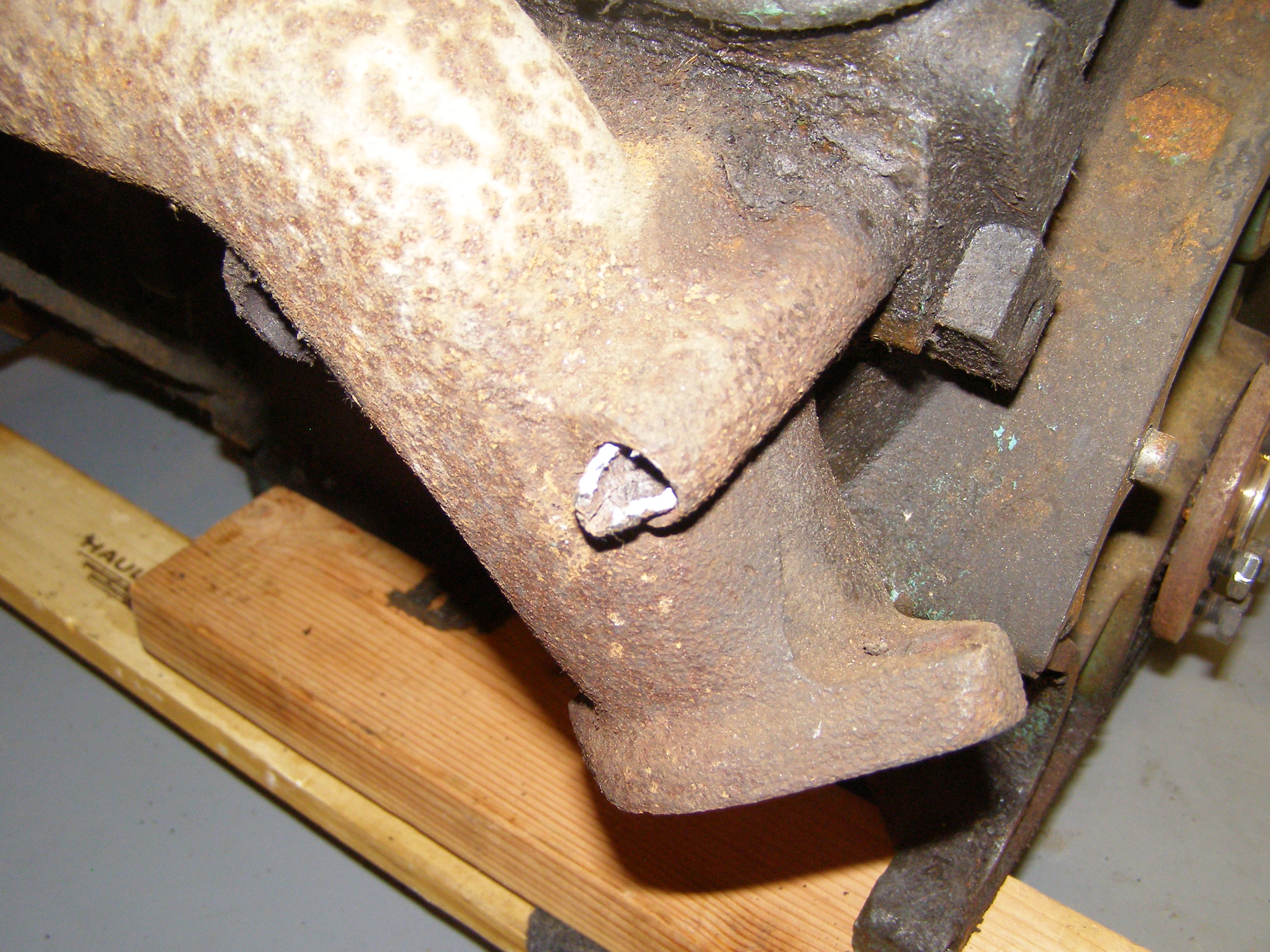 I have 361 wedge that I'm disassembling. Removing the exhaust manifolds has become a problem. All nuts came off with no problem, no rust at all. The last two sleeve type nuts that go through the manifold are the problem. The left side collapsed and the right side worn rounded. Can these be drilled out, or is there a better way. I"ve not had this problem before and looking for advise.