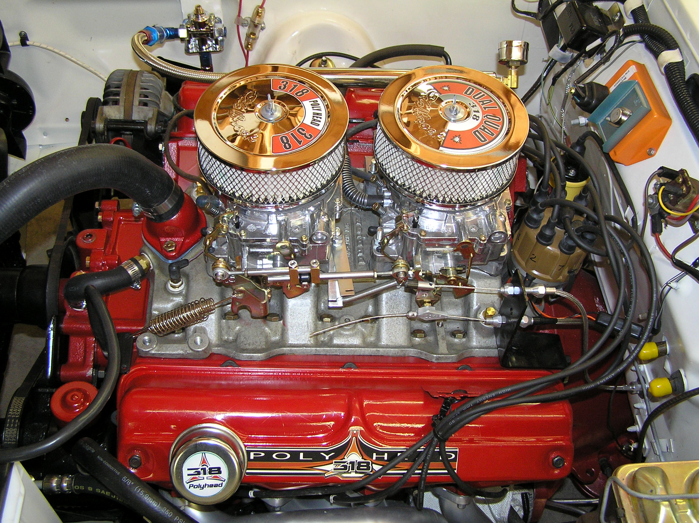 Thanks, I forgot how nice it looked with dual quad manifold - beautiful! Did the Lokar cable connect to your existing throttle pedal? I'm passing on your picture to my brother who is trying to decide what to do for an air filter with dual quad Edelbrocks.--On Wednesday, February 24, 2021 at 6:25:48 AM UTC-8 LeRoar wrote:I hope this shows up..On Wed, Feb 24, 2021 at 8:11 AM Richard Kinsley <leroar.k...@xxxxxxxxx> wrote:I used Lokar for both. I know there are pictures. All I have to do is find them.On Mon, Feb 22, 2021, 10:06 PM dennis.1963ply <dennis....@xxxxxxxxx> wrote:Rich, would you happen to have a picture of the linkage on the intake manifold? Did you use the Lokar just for the kick-down? What did you use for the throttle cable? Thanks by the way my brother solved his problems with the Edelbrock 2 fours on his engine. Fuel pressure too high and the floats set wrong on the back one.--On Saturday, February 20, 2021 at 10:28:06 AM UTC-8 LeRoar wrote:I used Lokar . It was good.On Sat, Feb 20, 2021, 10:31 AM dennis.1963ply <dennis....@xxxxxxxxx> wrote:Hello,I am installing the Wind Tunnel intake 318 in a 1964 Belvedere. I would appreciate any thoughts on throttle and kick down cables. It looks like Lokar and Bouchillon are companies that have kits. Thanks--