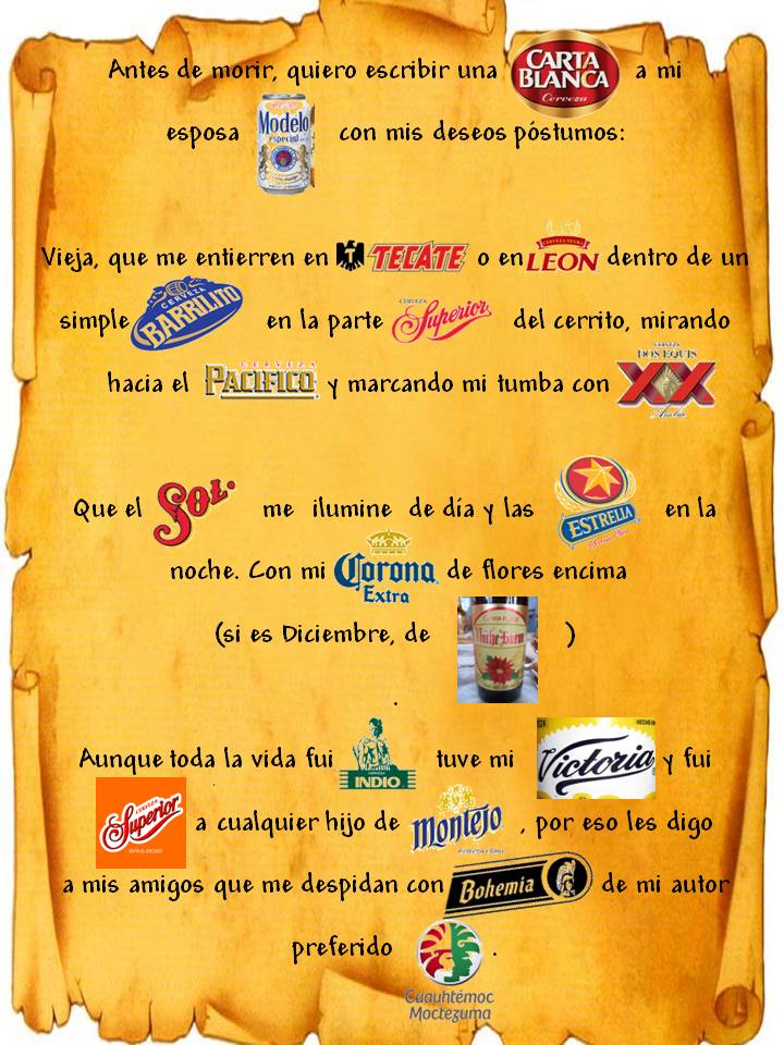 JA JA JA AL LEER ESTE TESTAMENTO ME ACORDE DE ALGUNOS CHELEROS CONOCIDOS.... PARA ELLOS CON CARIÑO.